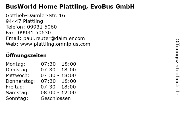Evobus Gmbh Plattling Höhenrain öffnungszeiten