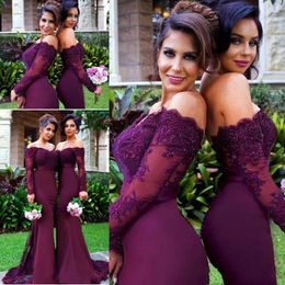 2019 Borgoña Fuera Del Hombro Sirena Vestidos Largos De Dama De