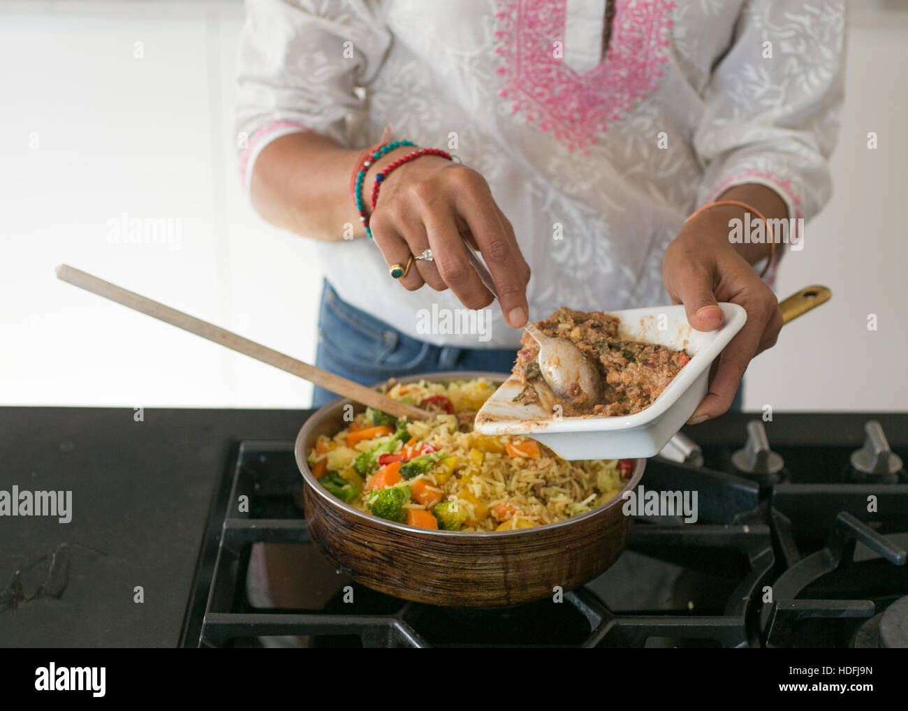 Young Indian Woman In A Kitchen Preparing Ayurvedic Food Stock Photo