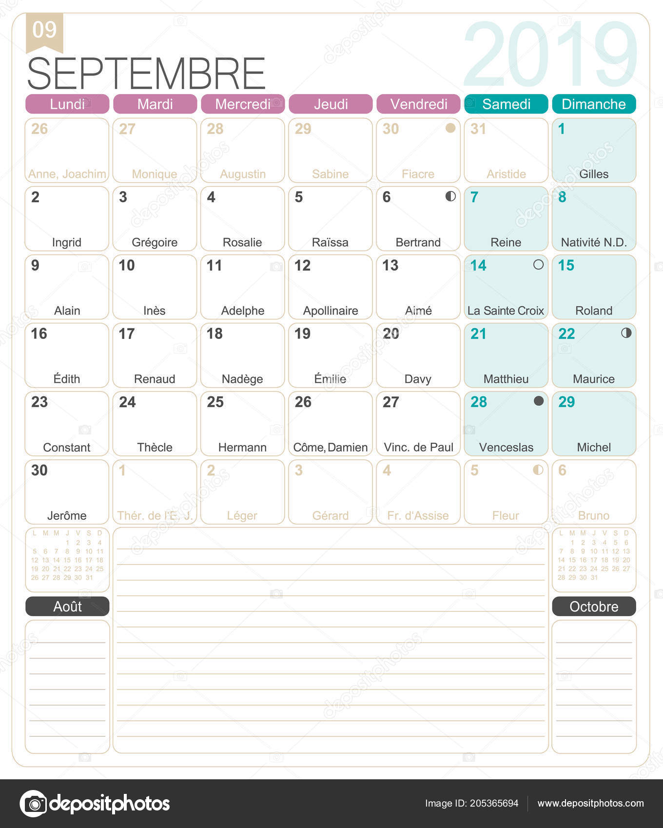 Französischen Kalender 2019 September 2019 Französische Druckbare