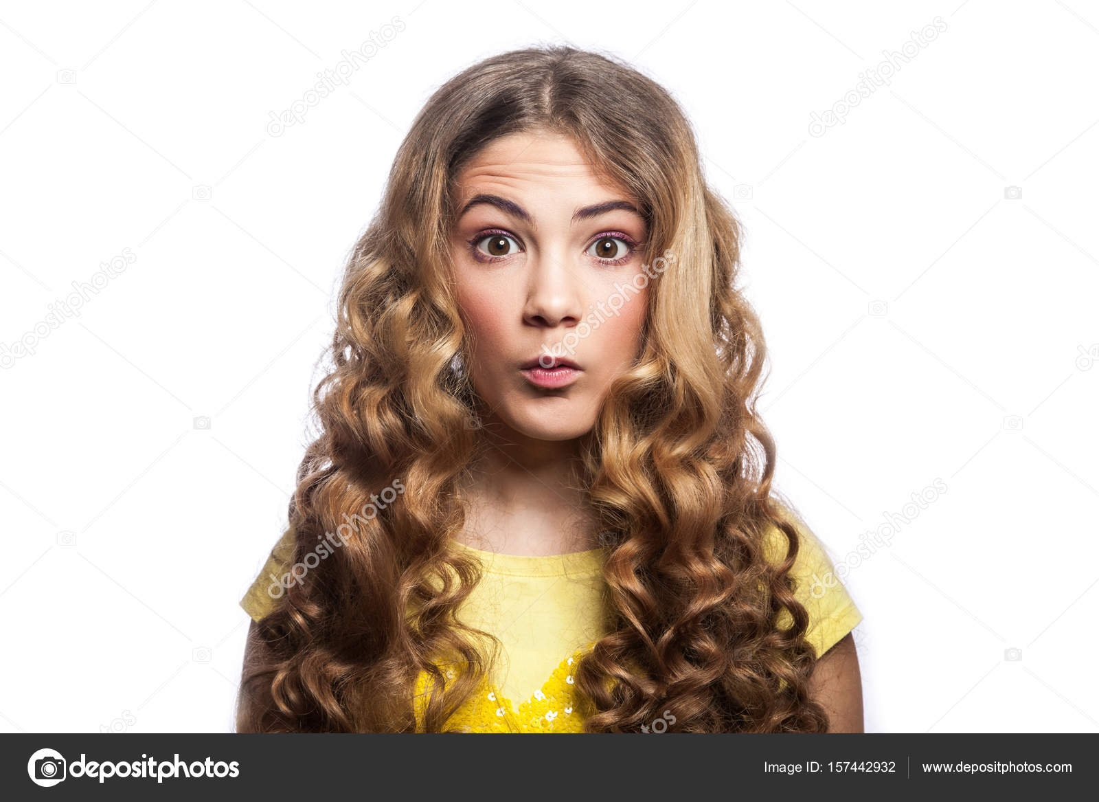 Fotos Peinados Ondulados Retrato De Niña Asombrada Con Peinado