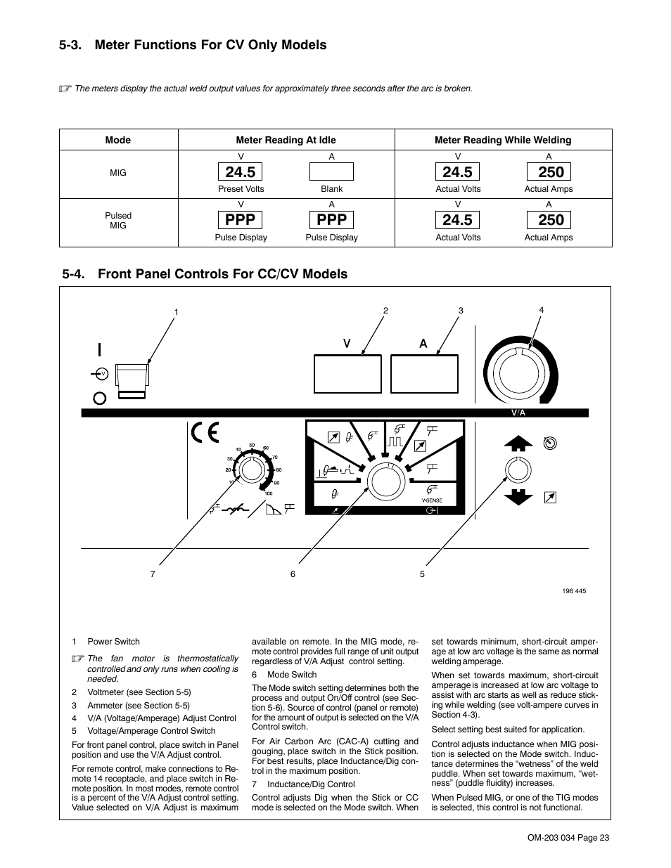 3 Meter Functions For Cv Only Models 4 Front Panel Controls For