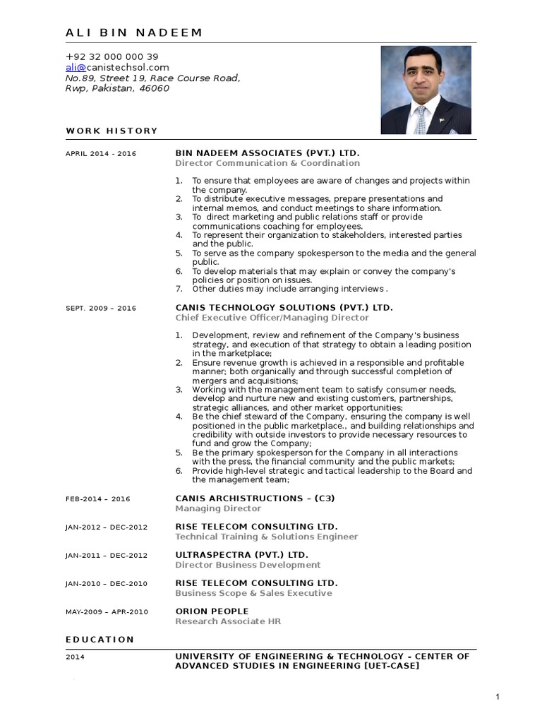American Type Ali Bin Nadeem Professional Cv All Exp 2016 V3